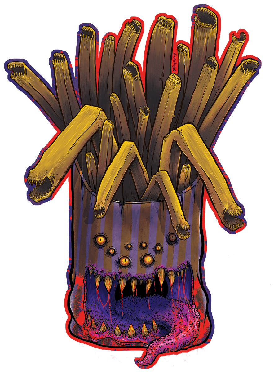 Screamy fries with some eyes! No, this isn't frylock but def see the resemblance, so for the sake of lore this is just his distant relative that went to hell or something.
