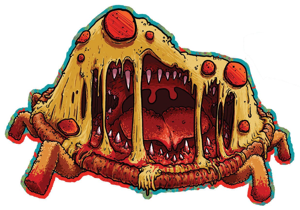 Just a happy pizza friend on mozzarella stick legs. Don't worry, that's just marinara and not blood.