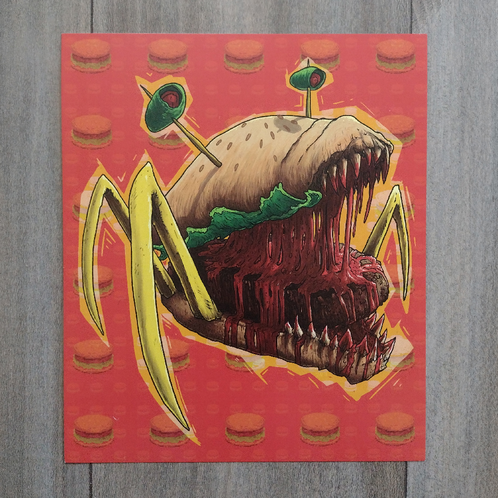 Burger and fries are delicious and they think you are too! Original burger monster inspired by that one part in The Thing (IYKYK).